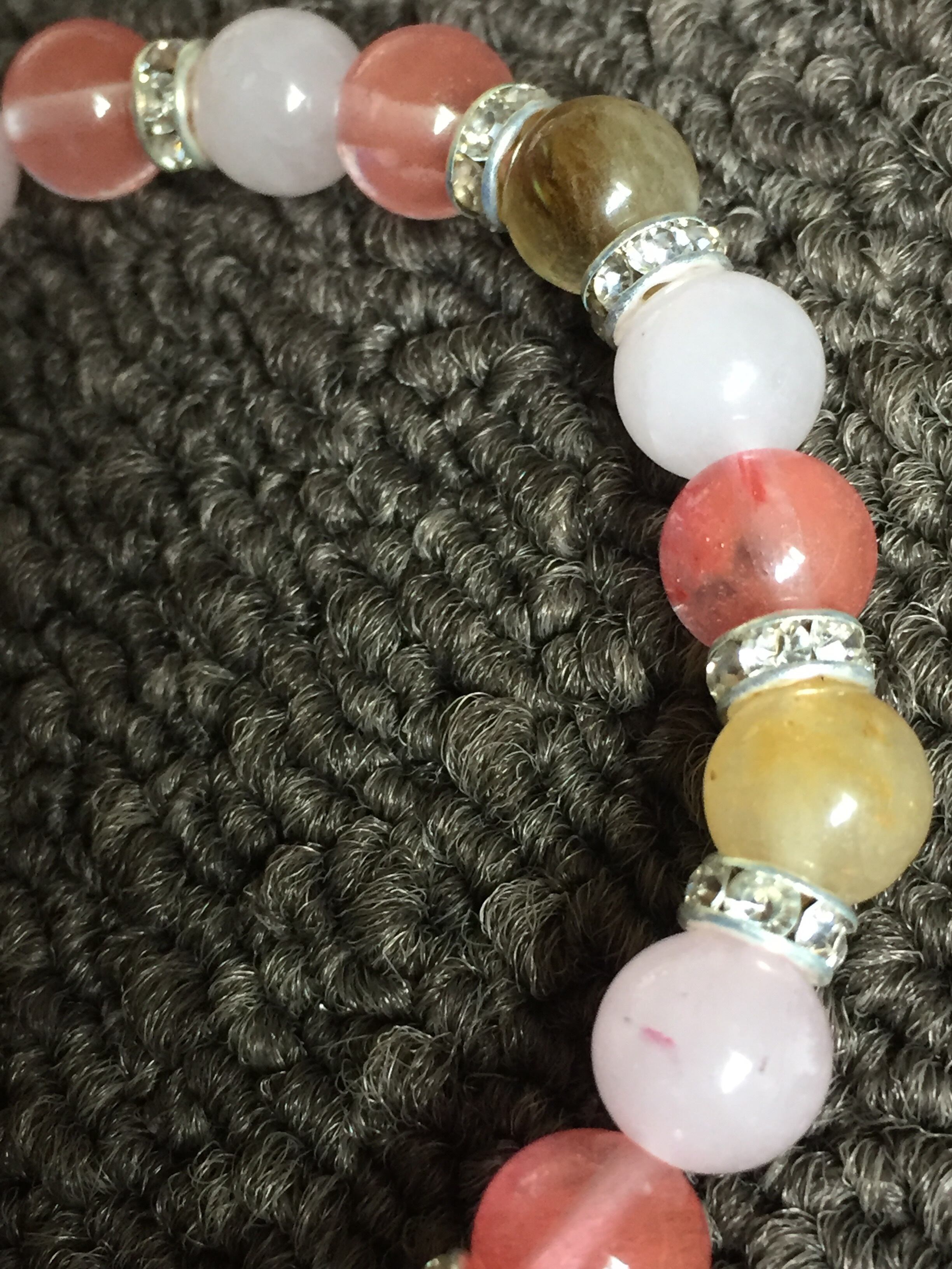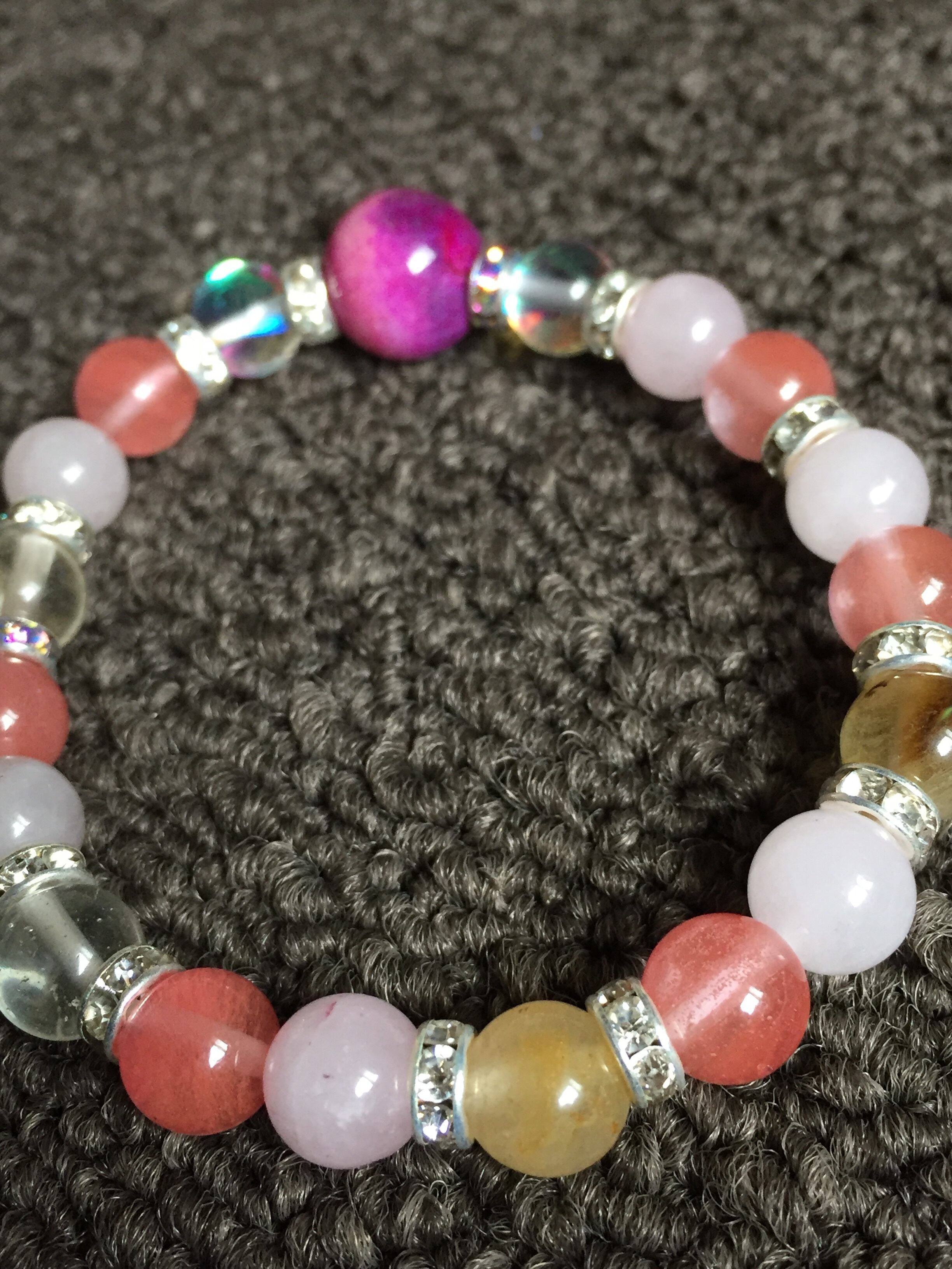 恋愛運が上がりそうなビーズをひとつずつ選んで組み合わせています。最近いらいらが募り素直に気持ちが伝えられないな…というような時に身につけると本心の優しい気持ちの後押しをしてくれるかも。
