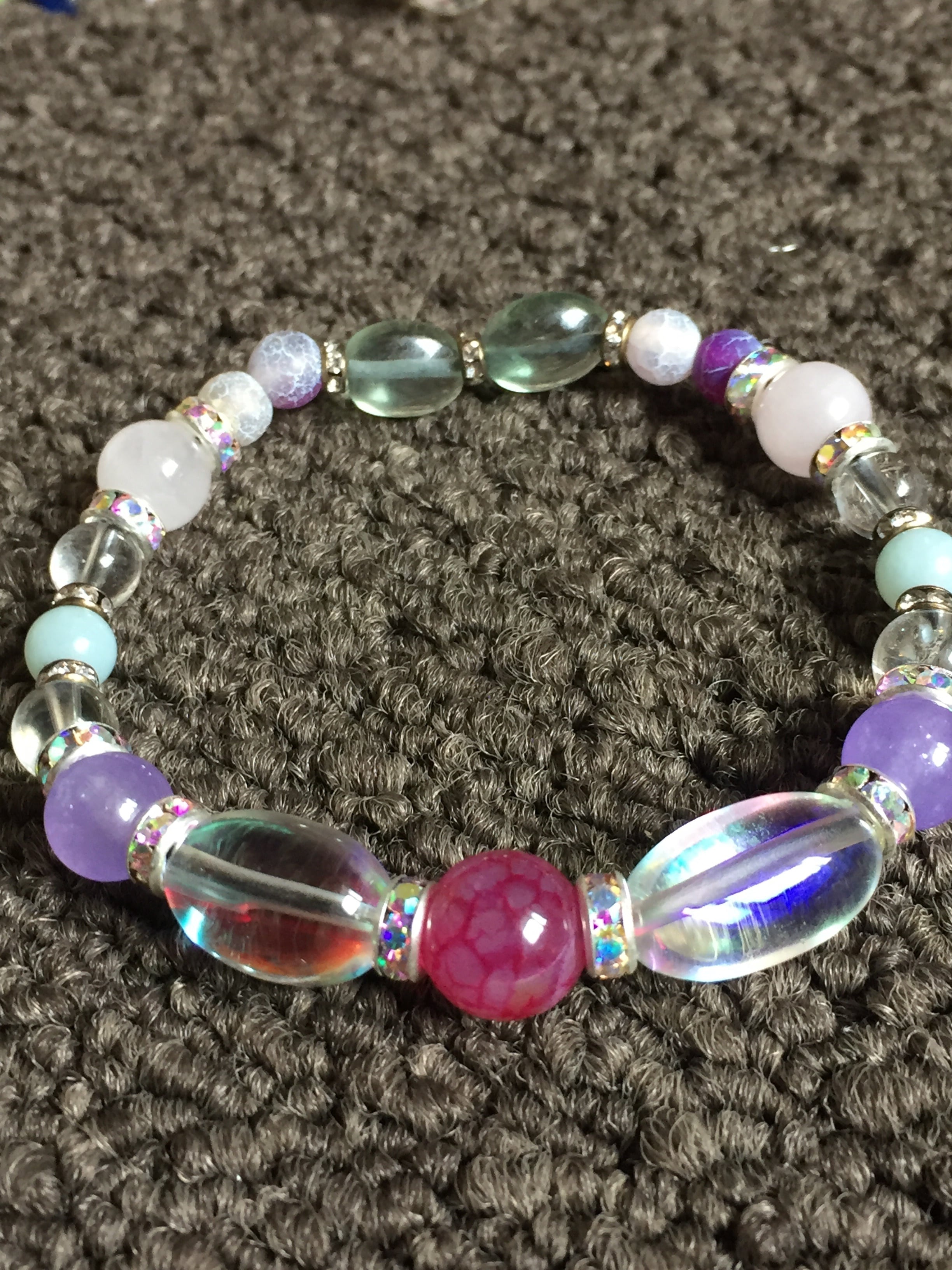 恋愛運が上がりそうなビーズをひとつずつ選んで組み合わせています。プライベートで男性と円満に済ませたい方へもお勧め。