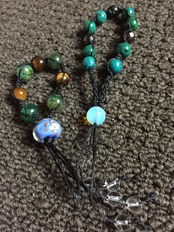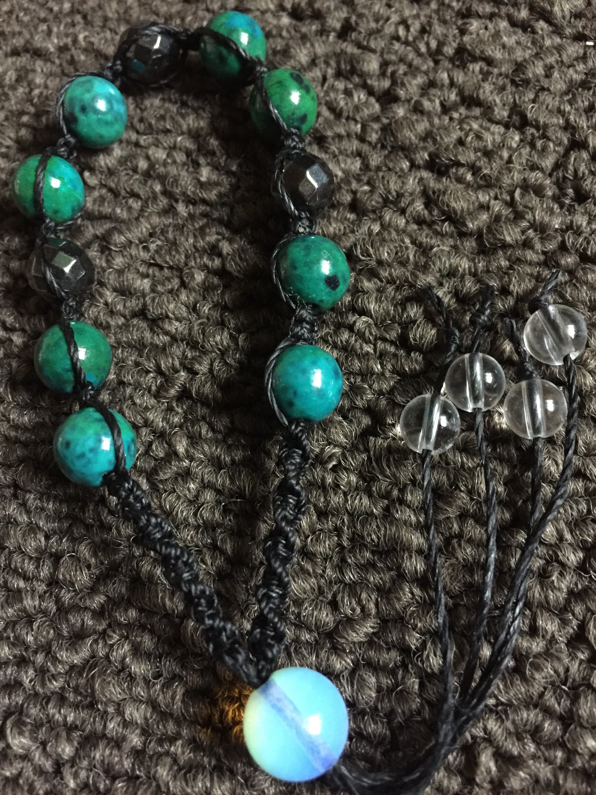 あらゆる霊障を想定して障りからあなたを守るためにビーズを1つずつ選び組み合わせています。あなたを襲う霊障からこの強力な霊障除けが守ってくれる事でしょう。取り憑いた生霊や死霊があなたを襲う時に障りを跳ねてくれます。1つはブレスレット、もう1つの小さい数珠を指にはめる事でダブルアタックとなり最大の効力を発揮します。小さい数珠の使い方は中指にはめて握ります。