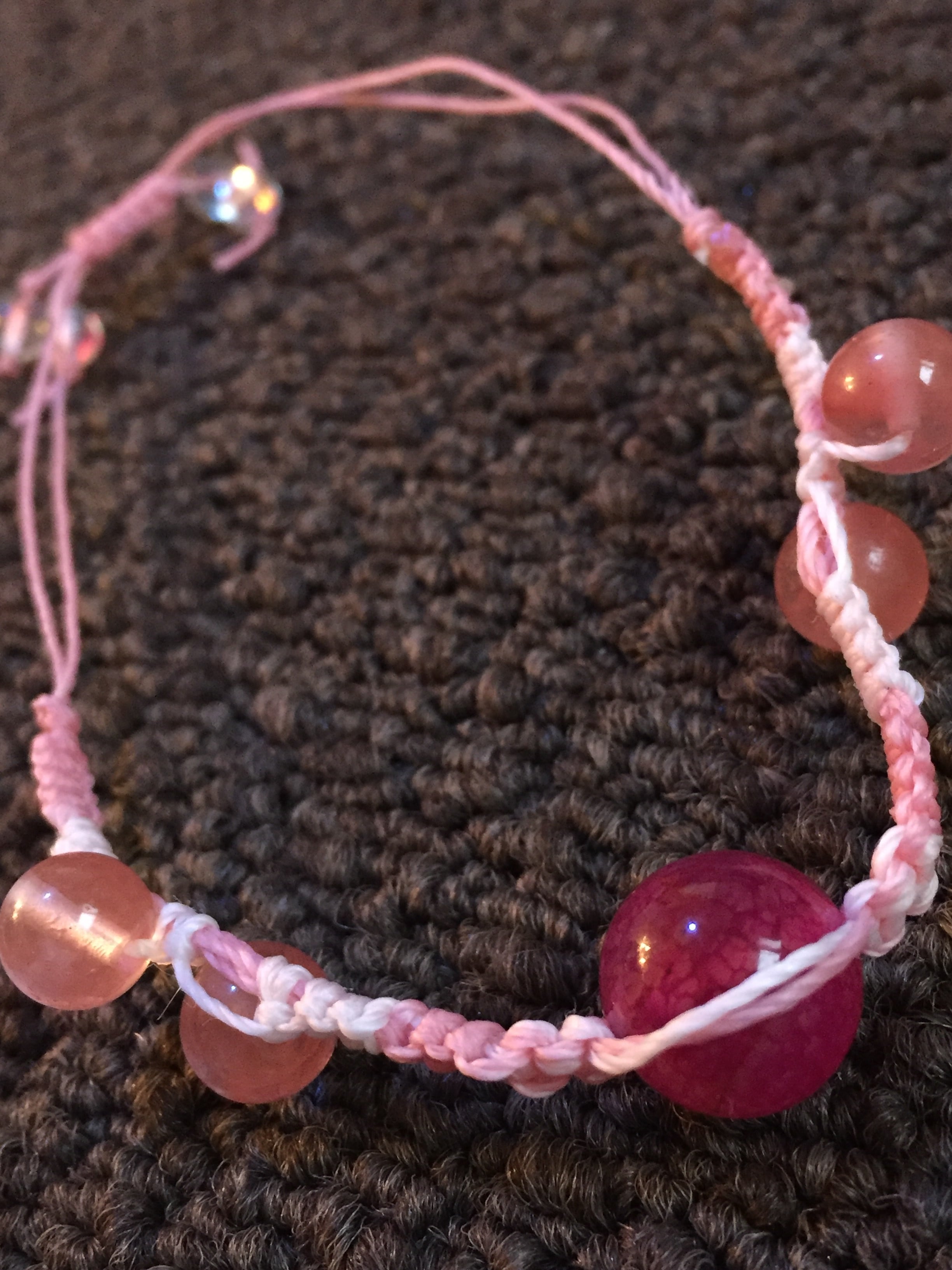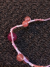 人間関係が円滑にいくようひとつひとつ念を入れて編んでます。サイズはフリーで最大20センチくらいまでのサイズなら大丈夫です。身に付けている間は笑顔の陰に見えない気遣いが出来る女性であるように霊的配分でビーズを配置してあります。